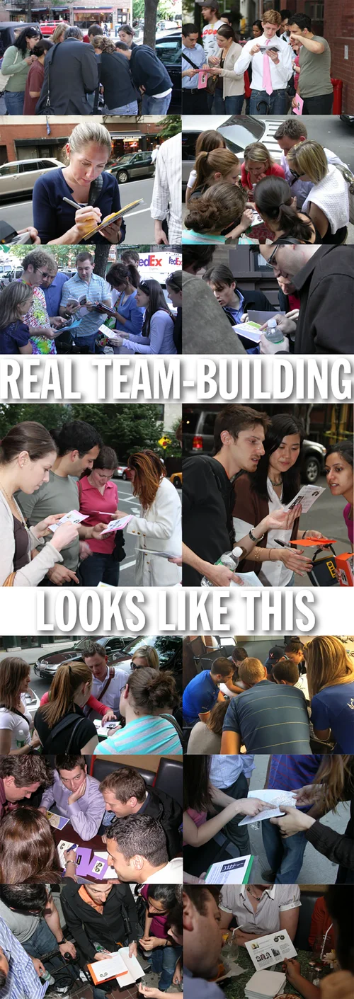 Like "We'd like our summer interns to bond as teams as well as welcome them with an orientation event." Or "The firm is so big now, all the different divisions don't really know each other. So we'd like to do a partner event that addresses that." From that research and more, we created Game the City so that it would achieve those kind of HR and recruiting goals. Getting co-workers to show each other what they're about, revealing more of who they are.
